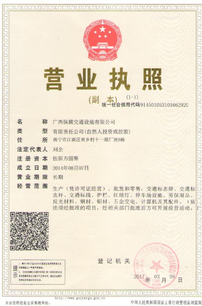 南寧市縱橫交通設施有限公司 變更為 廣西縱橫交通設施有限公司。